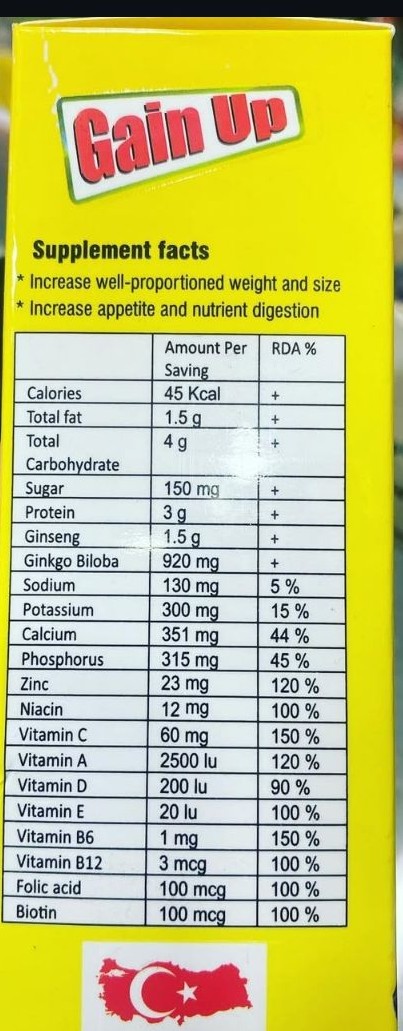 قرص گین آپ چاق کننده صورت یک محصول وارداتی از کشور ترکیه میباشد که با ترکیبات عالی و ۱۰۰% طبیعی خود، باعث افزایش اشتها و افزایش طبیعی حجم و سایز صورت و تپل تر شدن صورت میشود. پایه و اساس این محصول ، از ترکیباتی مانند شیر، تخم مرغ، و آلبومین تهیه شده و به عنوان یکی از بهترین مکملها برای افزایش حجم صورت و رفع مشکلات ناشی از لاغری ، شناخته میشود. این محصول در بسته بندی کارتنی ( مانند عکس محصول ) ارائه می شود . هر بسته از محصول دارای ۶۰ عدد کپسول اصل و با کیفیت گین آپ میباشد . میزان دوز مصرفی بصورت رازانه ۲ عدد میباشد که یک عدد صبح و یک عدد شب مصرف می شود . محصولات گین آپ اصل دارای هولوگرام و همچنین چاپ برجسته برای بسته بندی میباشند . حتما در خرید محصول به موارد گفته شده دقت کنید و از خرید محصولات فیک و تقلبی پرهیز کنید.